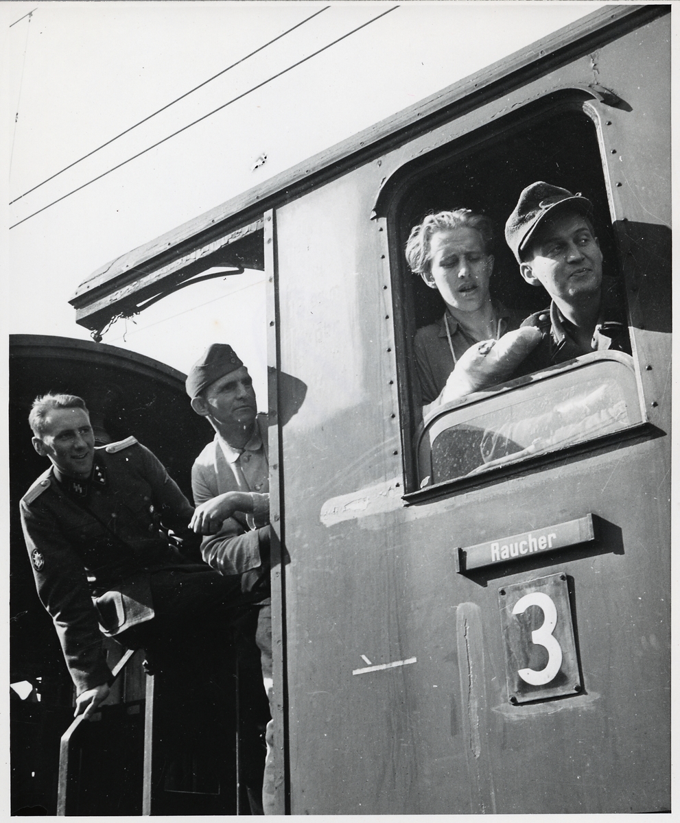 Skadade tyska soldater ombord på tyskt sjukvårdståg i Hallsberg under Andra Världskriget.