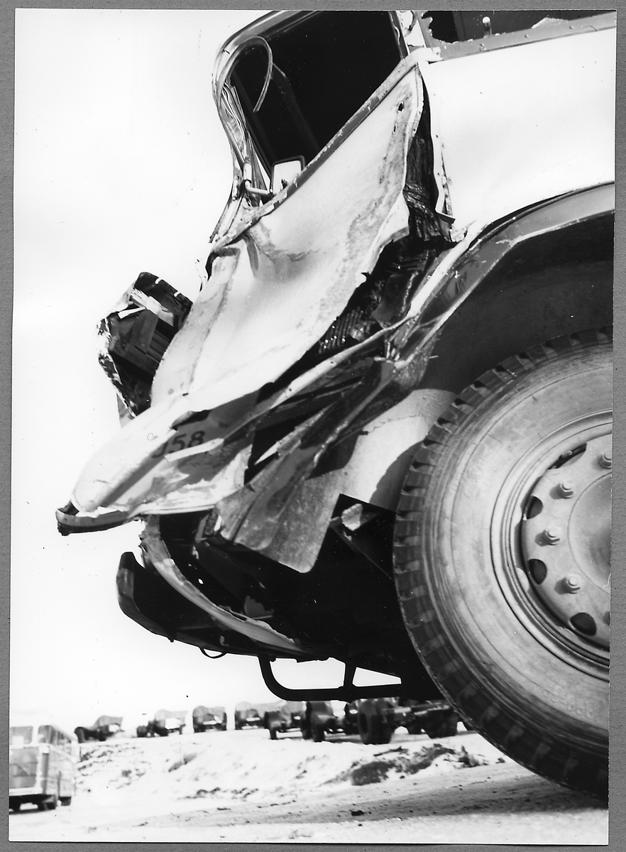 Kollisionskador på buss, Statens Järnvägars, SJ buss 1058.