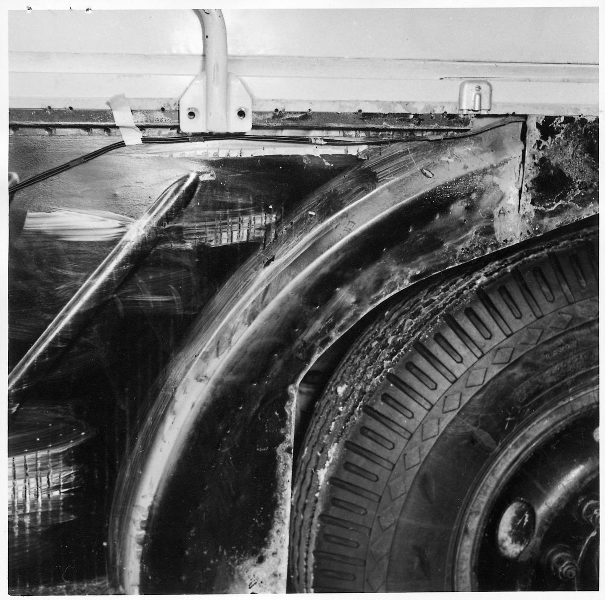 Detaljbild på kollisionskadad buss, Statens Järnvägars, SJ buss 2128.