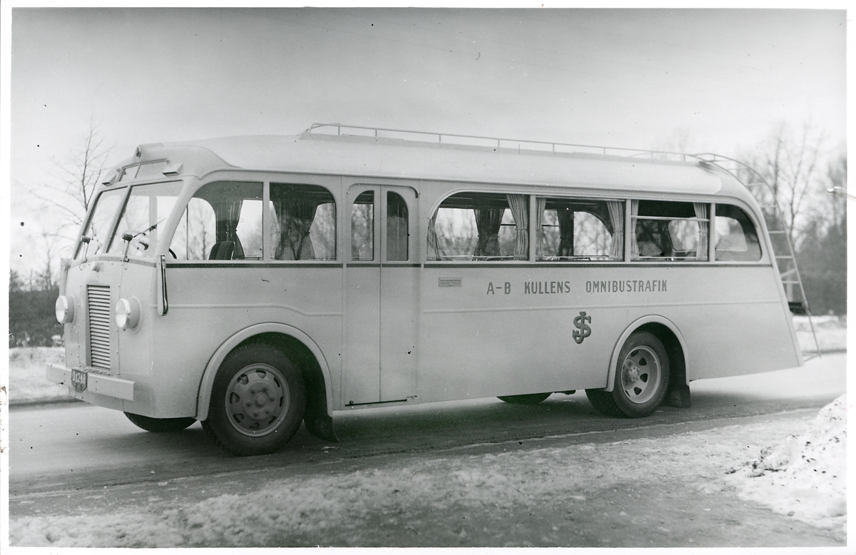Titel: Buss från A-B Kullens Omnibustrafik med SJ emblem levererad 1939-01-24.