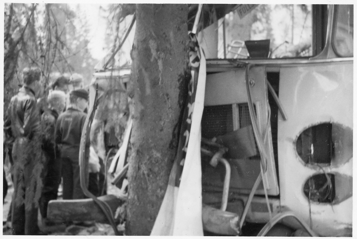 Kollisionskadad buss, Statens Järnvägars, SJ buss 2496.