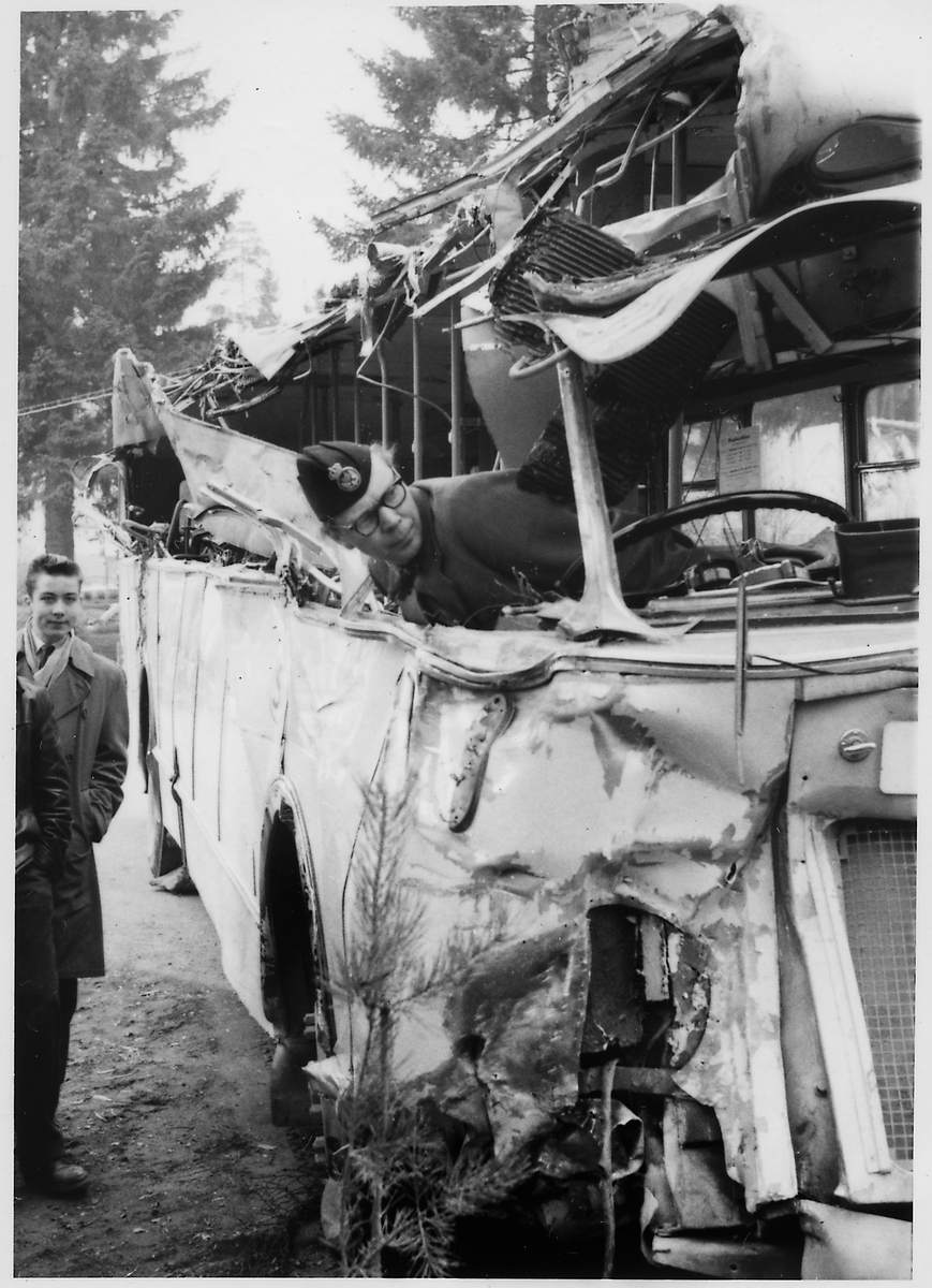 Kollisionskadad buss, Statens Järnvägars, SJ buss 2496.