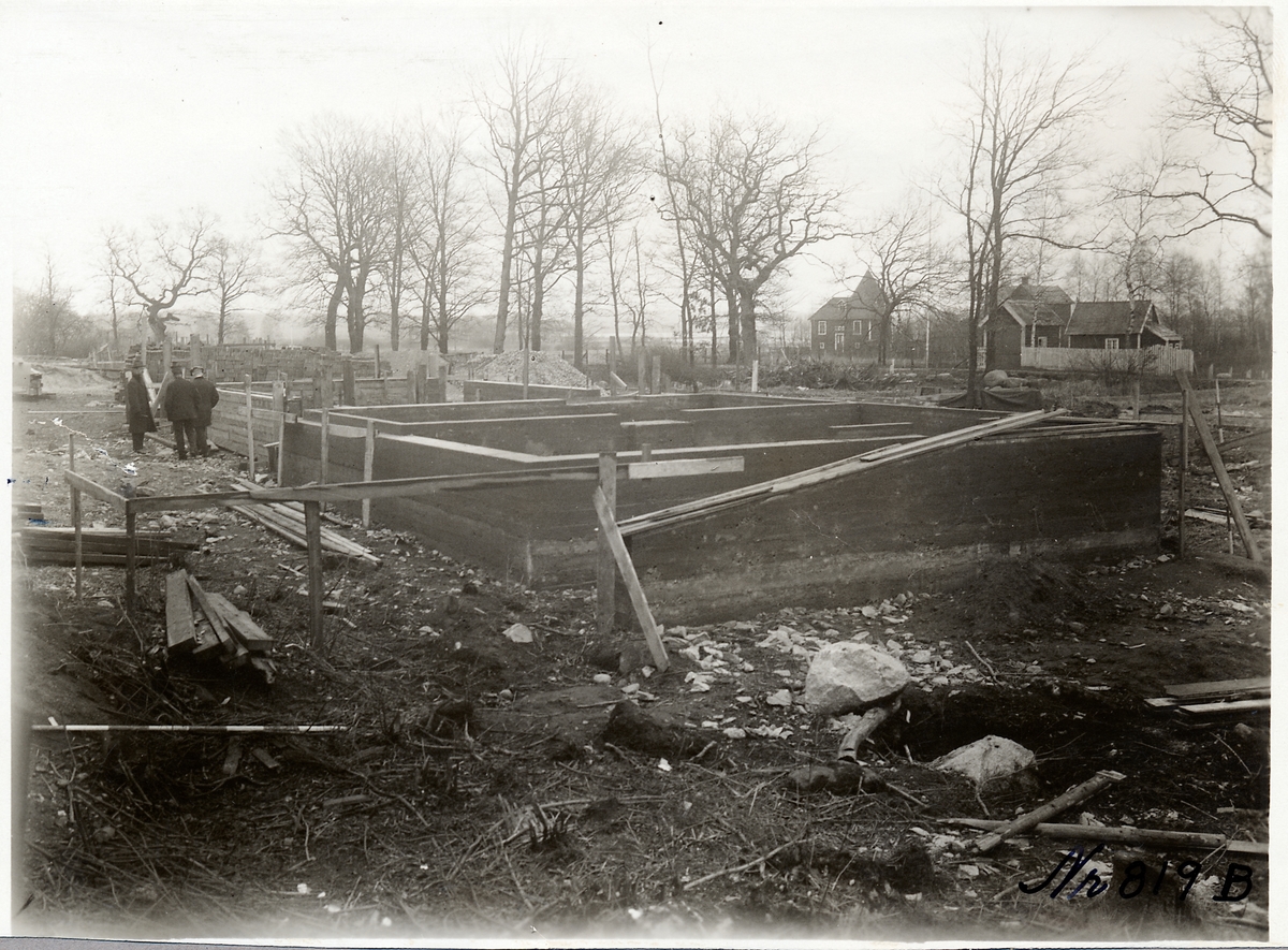 Titel: Sjöholmens stationshus under uppbyggnad.