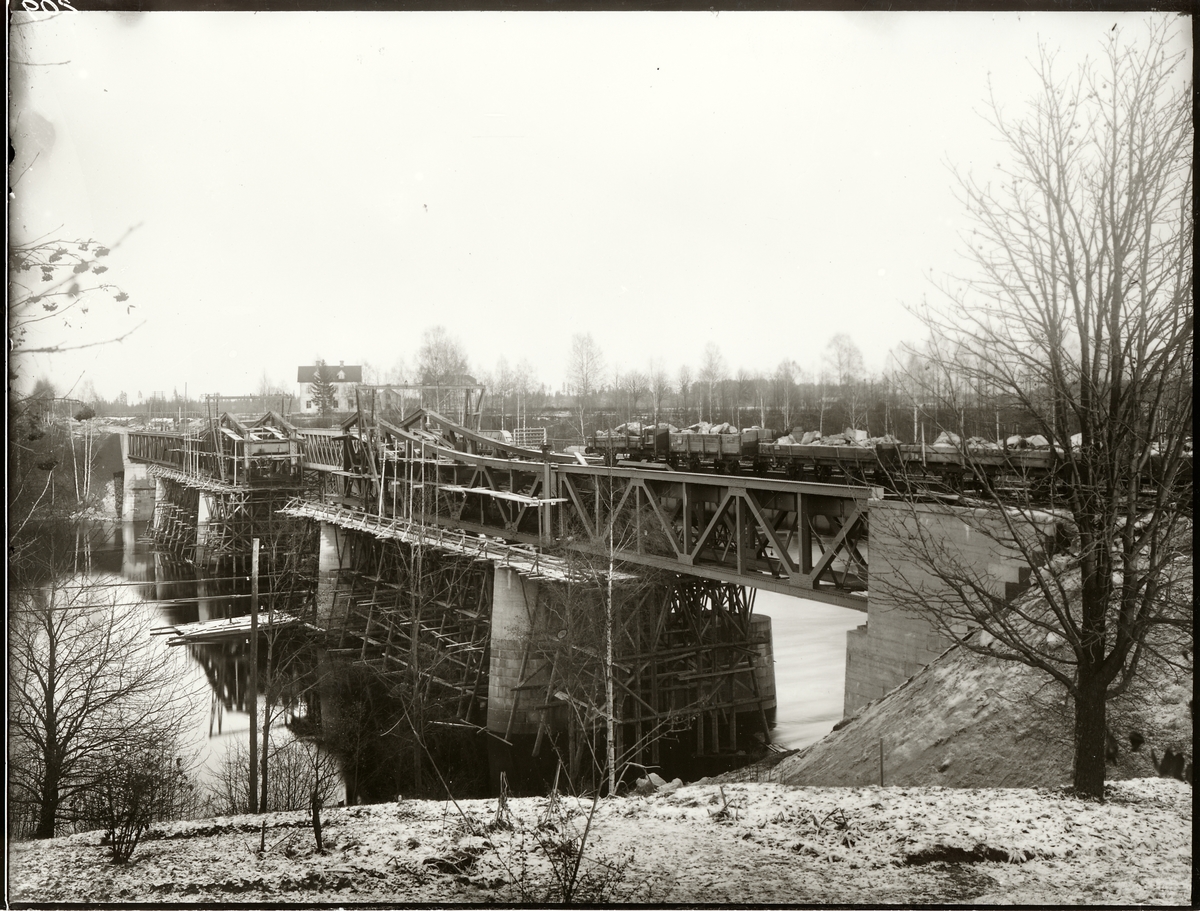 Brobyggnation vid Krylbo på linjen mellan Krylbo och Storvik.