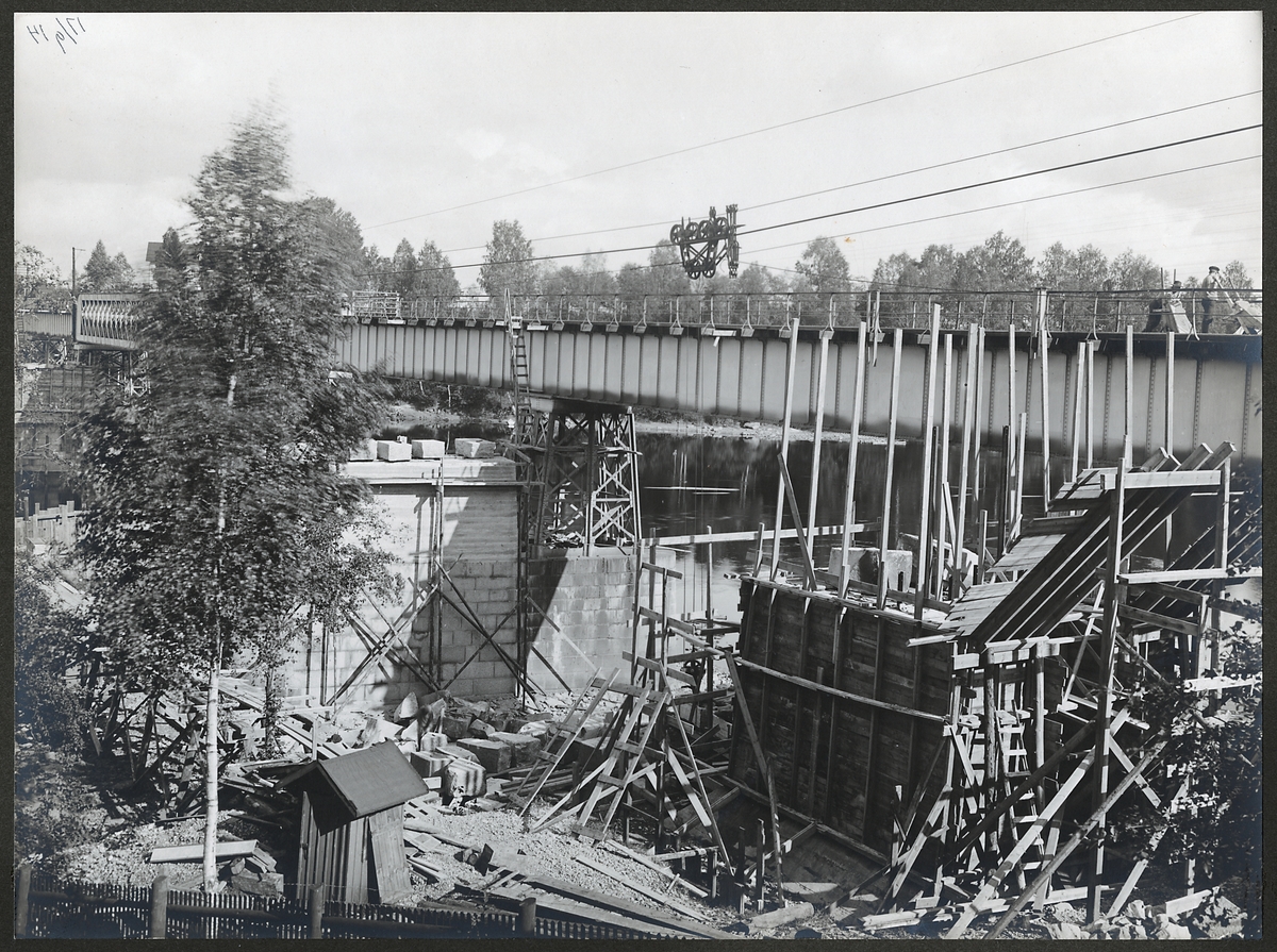 Brobyggnation vid Krylbo på linjen mellan Krylbo och Storvik.
