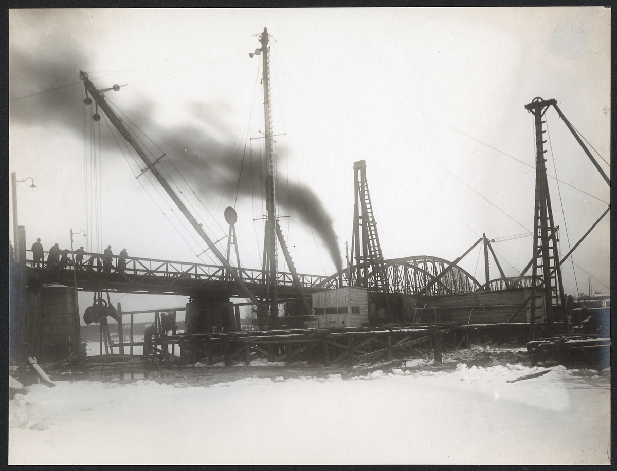 Dalälven vid Mora. Muddringsarbete vi bropelare nr 1.