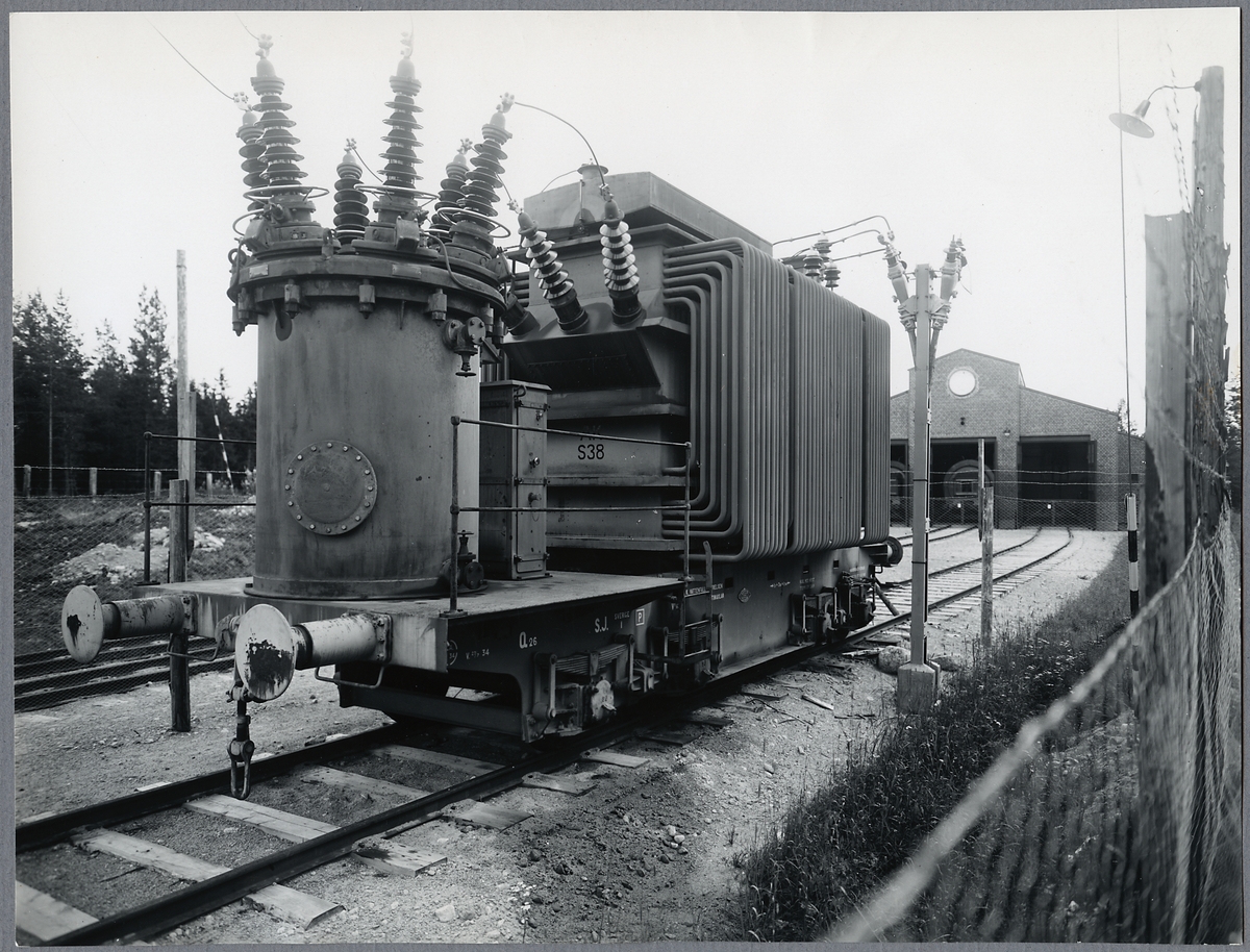Statens Järnvägar, SJ Q26 transformator och mätvagn. Ort okänd.