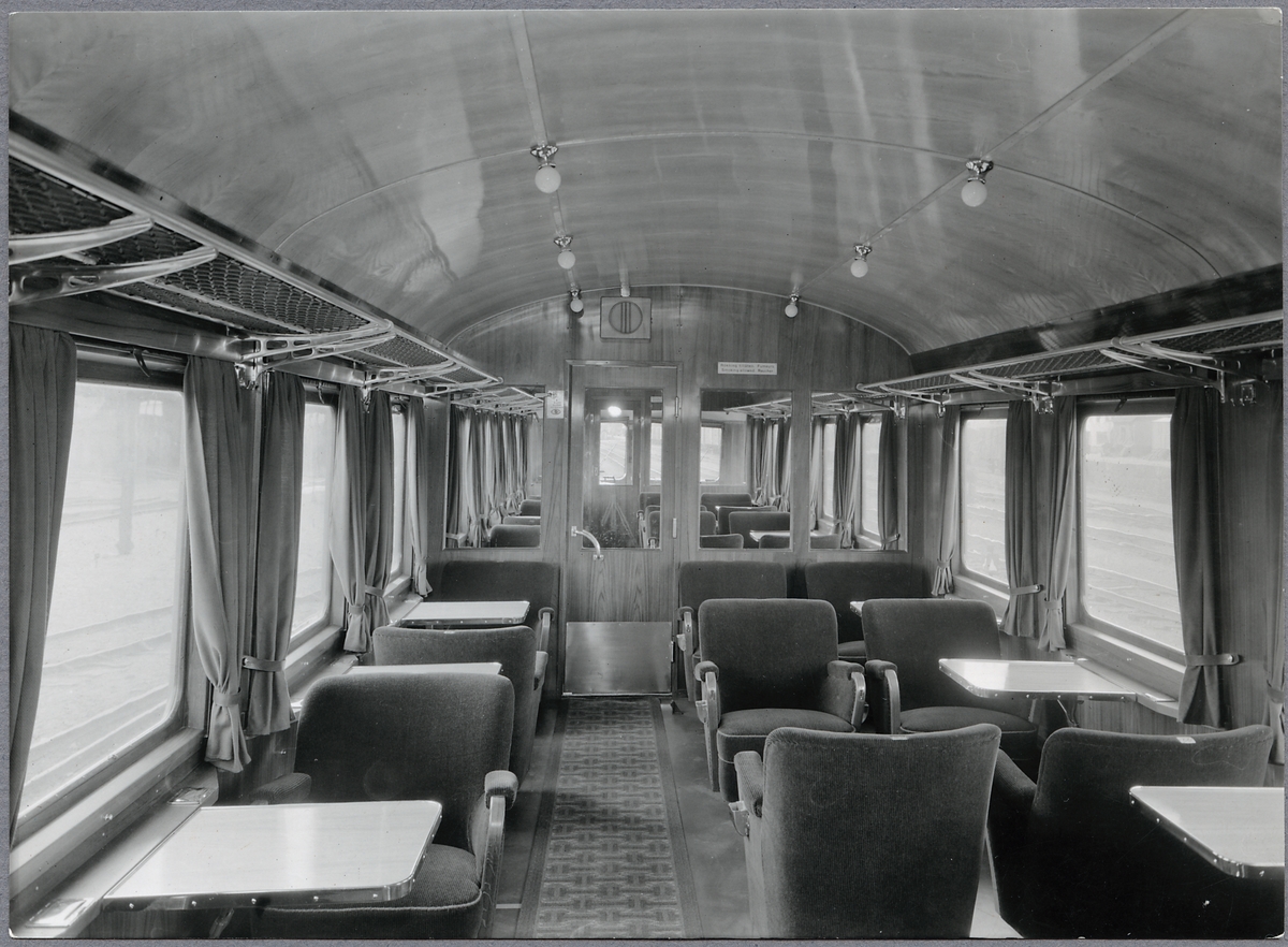 Titel: Inredning i en av vagnarna till expresståget Göteborgaren.