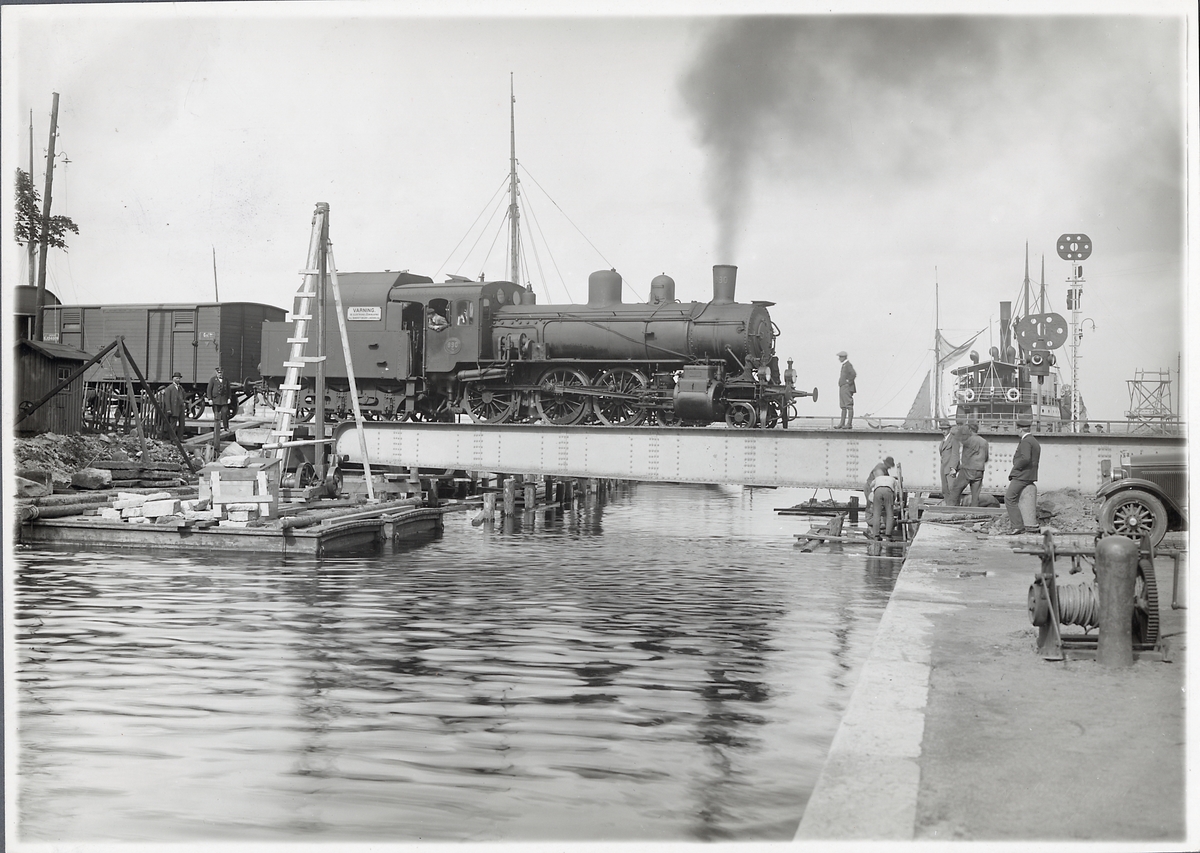 Svängbro över kanalen i Jönköping. Statens Järnvägar, SJ Tb 890 och SJ G 24009.