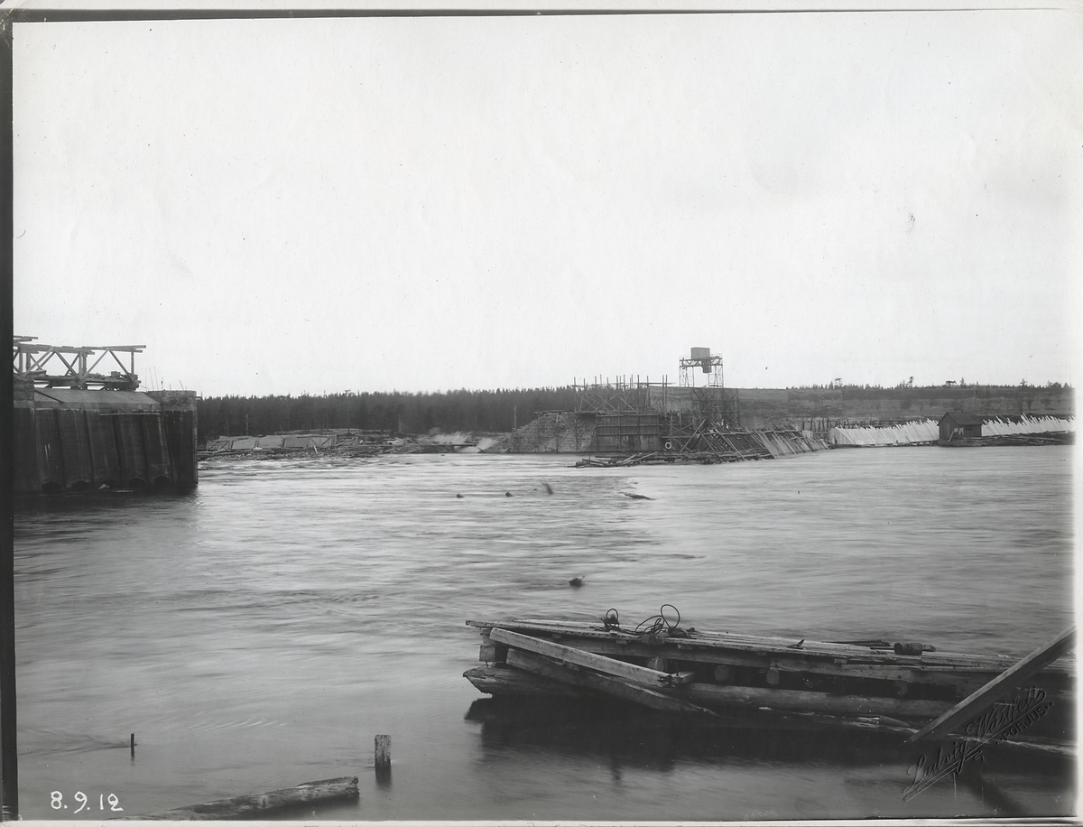 Porjus kraftverk under byggnation vid Stora Lule älv.
