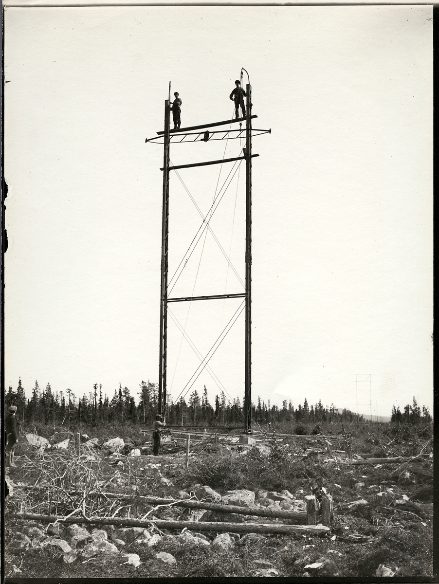 Titel: Slutlig montering av mast för högspänningsledningarna.