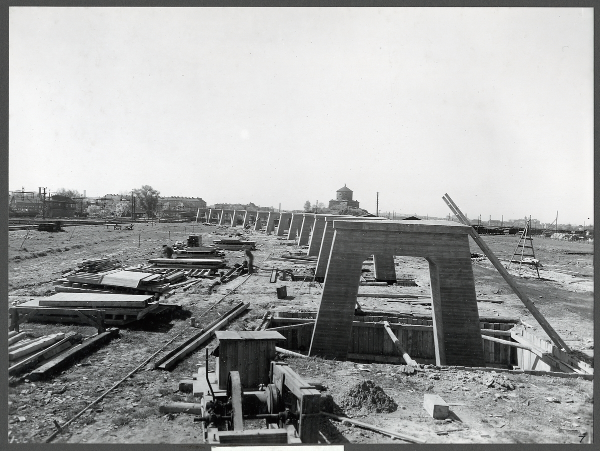 Viadukt för godstågsspår Almedal - Sävenäs rangerbangård under konstruktion.