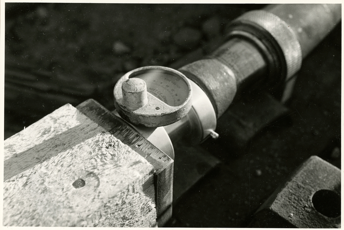 Verktyg vid banarbete efter urspårning av tåg 93, Nordpilen, på sträckan mellan Simeå och Undersvik 1956-03-27.
