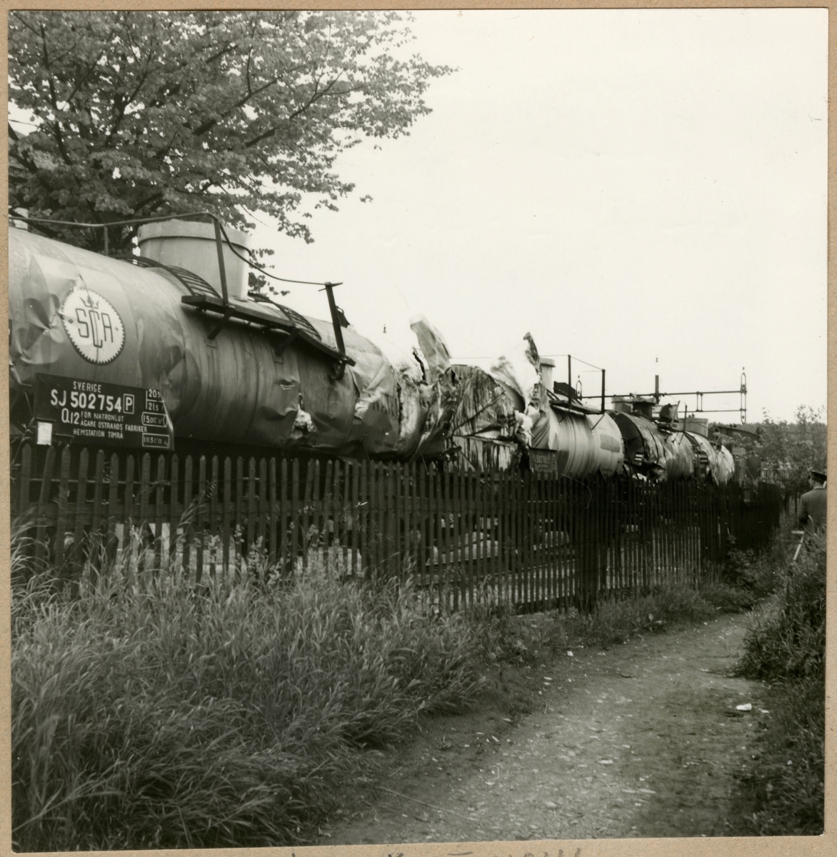 Tankvagnar med natronlut efter urspårning med godståg.