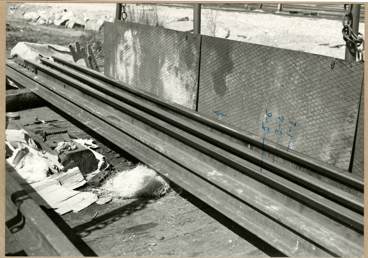 Titel: Räler från urspårning på sträckan mellan Ulvshyttan och Sellnäs, här fotograferade i Hagalund.