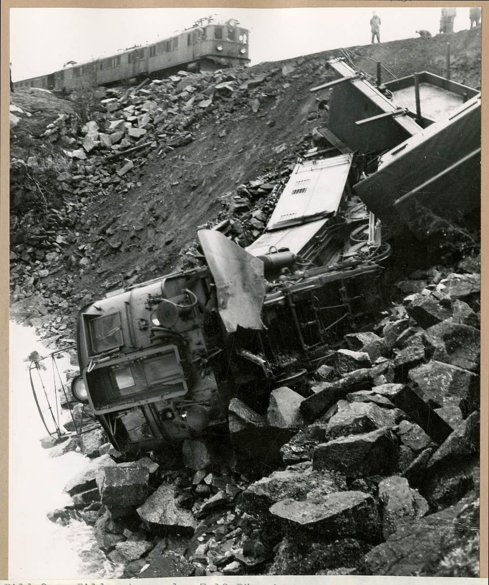Järnvägsolycka i Norge. Banvallsras vid Katterat. Bilden tagen strax innan uppröjningen påbörjats.