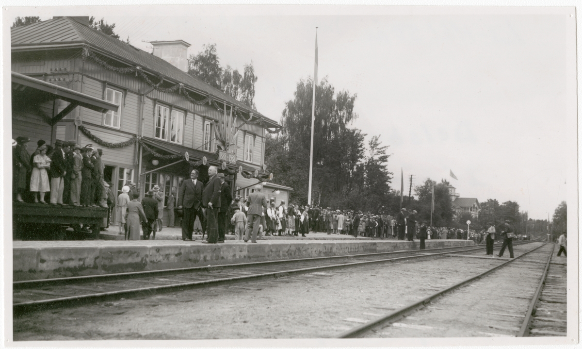 Delsbo station 1938 i väntan på jubileumståget 1888-1938.