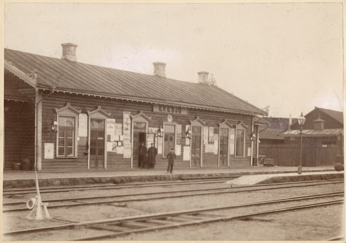 Station anlagd 1873. Nybyggt stationshus, två våningar i tegel, Den första stationsbyggnaden envånings i trä. Ny stationshus 1897. Godsmagasinet brann 1902, ersatt med ett nytt 1903. Nytt lokstall 1898. 1874 byggdes en järnvägsverkstad med korsvirke och tegel. Denna brann 1922. Ny verkstad byggd 1916 - 1923.