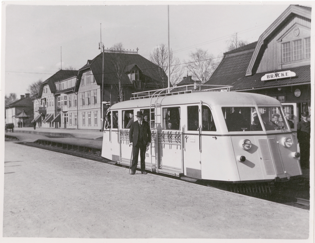 Bräcke station år 1936. Ånge - Sollefteå. Provkörning av Rälsbuss, Statens Järnvägar, SJ Yd 331.