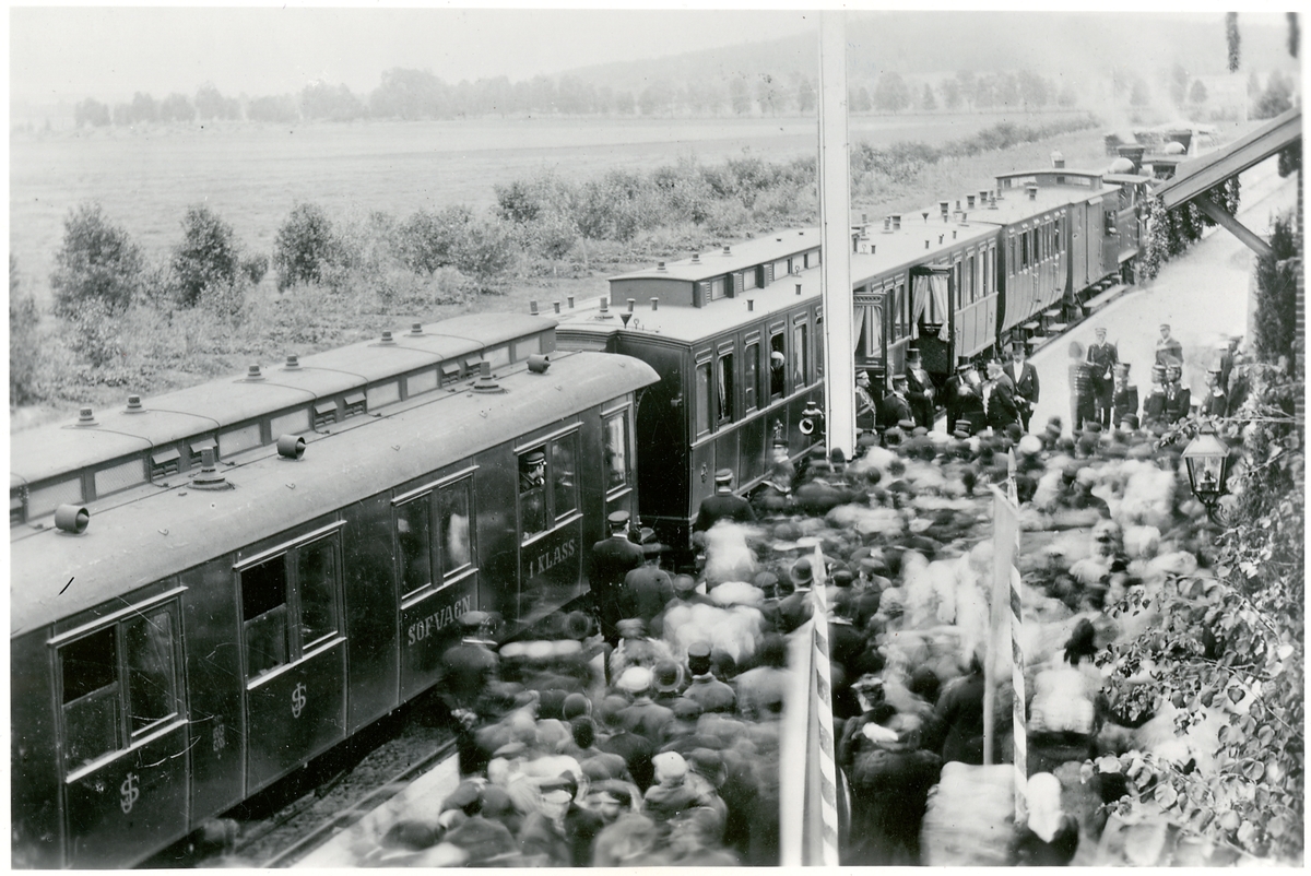 Edsvalla den 18/9-1895 var kungligt extra tåg anordnat för Oscar 2 med uppvaktning på linjen Kil-Mellerud