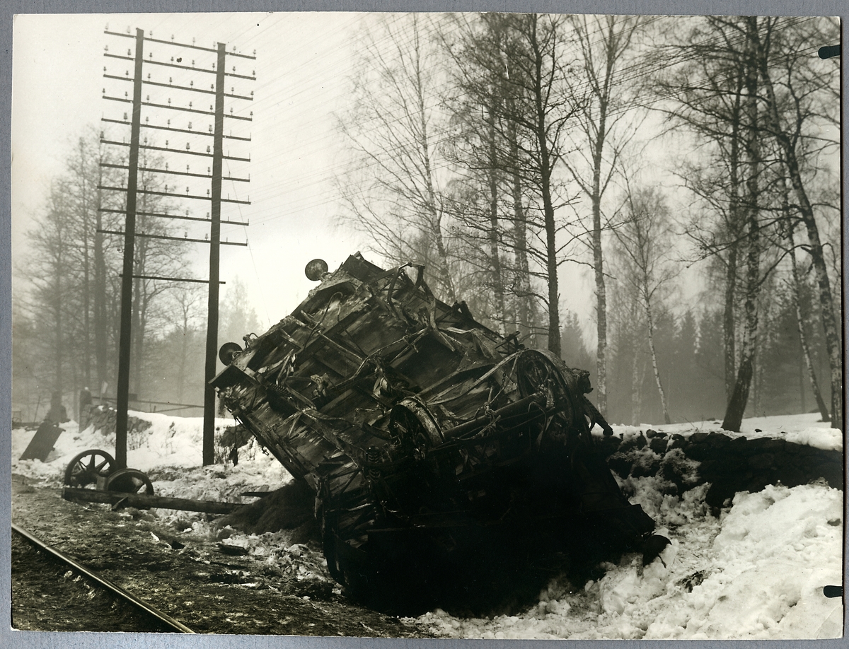 Urspårad vagnar ligger på sidan av järnvägslinjen.