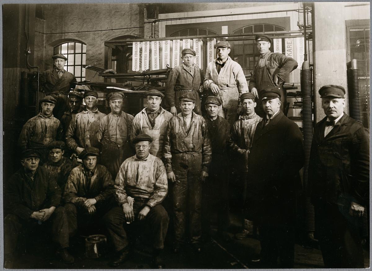 Målarlaget. Skyltar i bakgrunden - Rökning förbjuden.