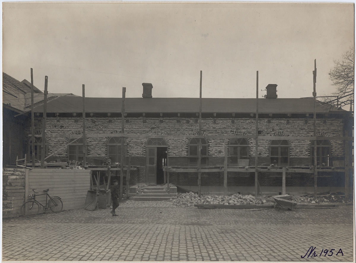 Eslöv, stationshus. Utbyte av fasadtegel i södra gavelpartiet.
