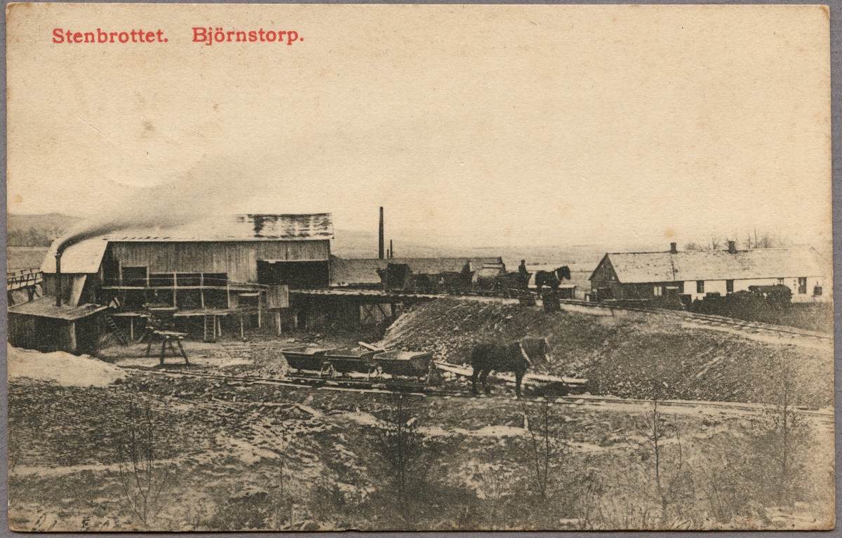 Hästdragna godsvagnar vid Björnstorp stenbrott.