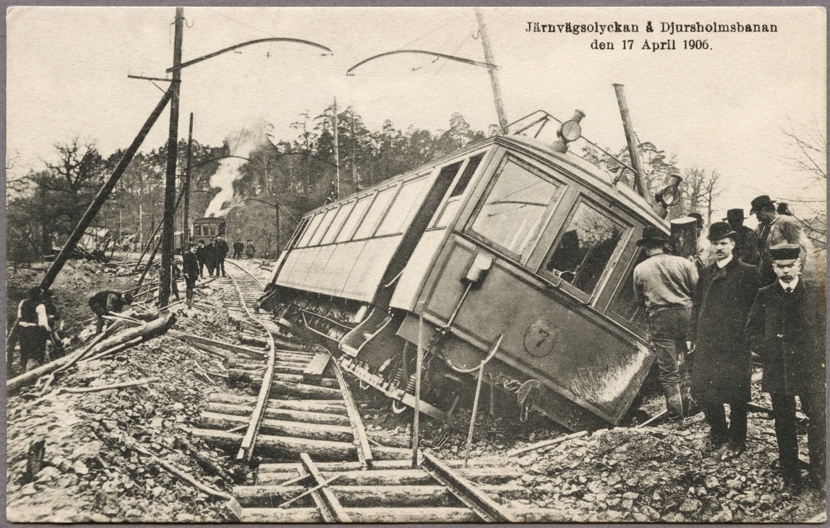 Djursholmsbanan motorvagn 7 urspårad efter banvallsras vid Frescati.