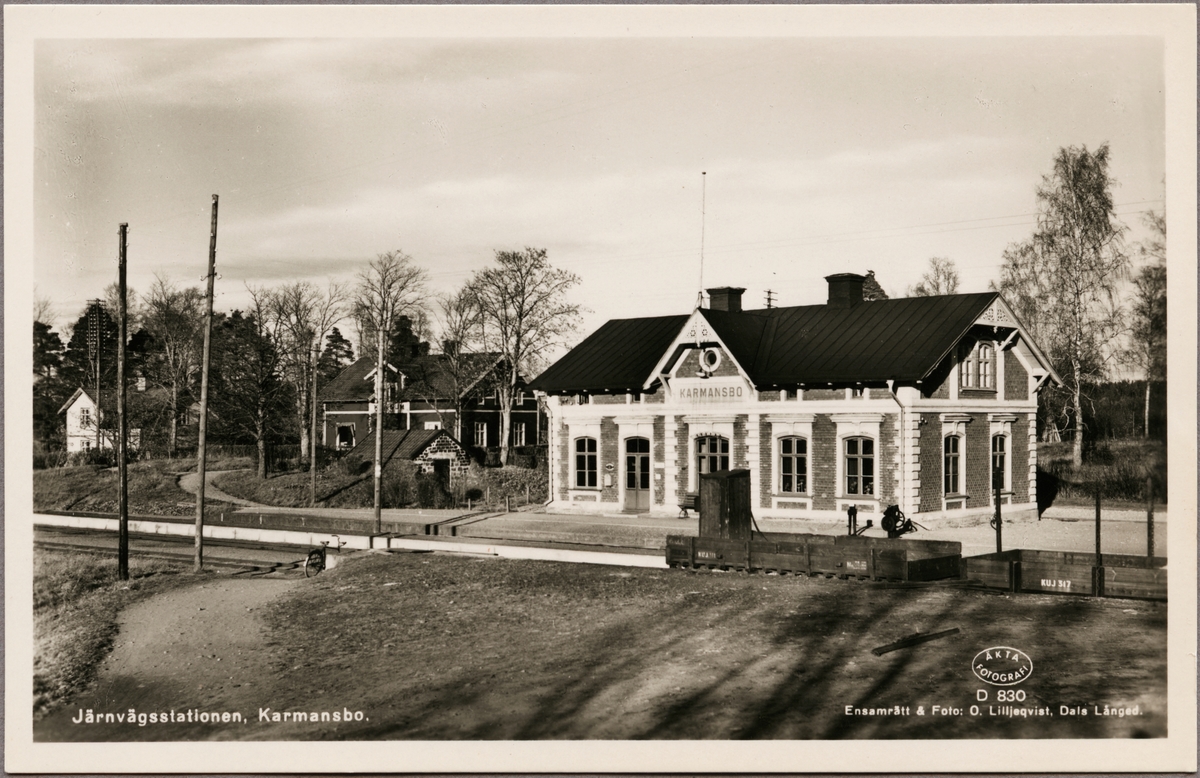 Karmansbo järnvägsstation med godsvagnarna Köping - Uttersbergs Järnväg, KUJ N 111 och KUJ N 317.