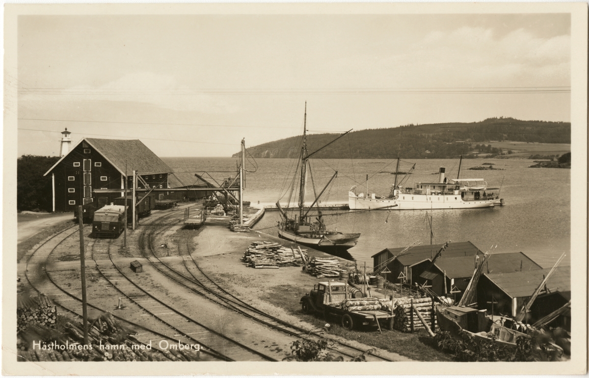 Hästholmens hamn med Omberg i bakgrunden.
