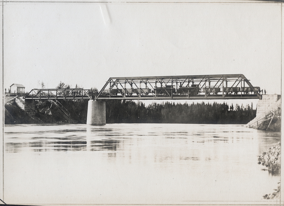 Provbelastning av järnvägsbron över Piteälven vid Älvsbyn på linjen mellan Älvsbyn och Laduberg.