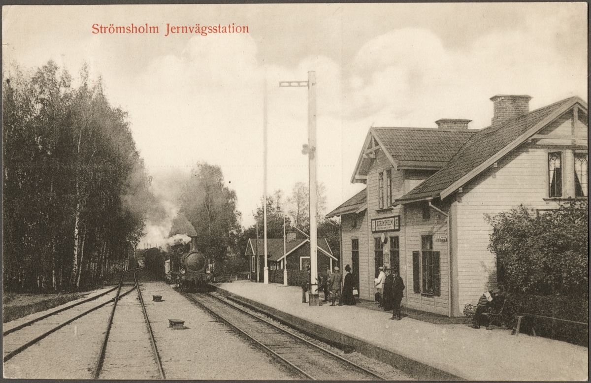 Station med resande och tåg.