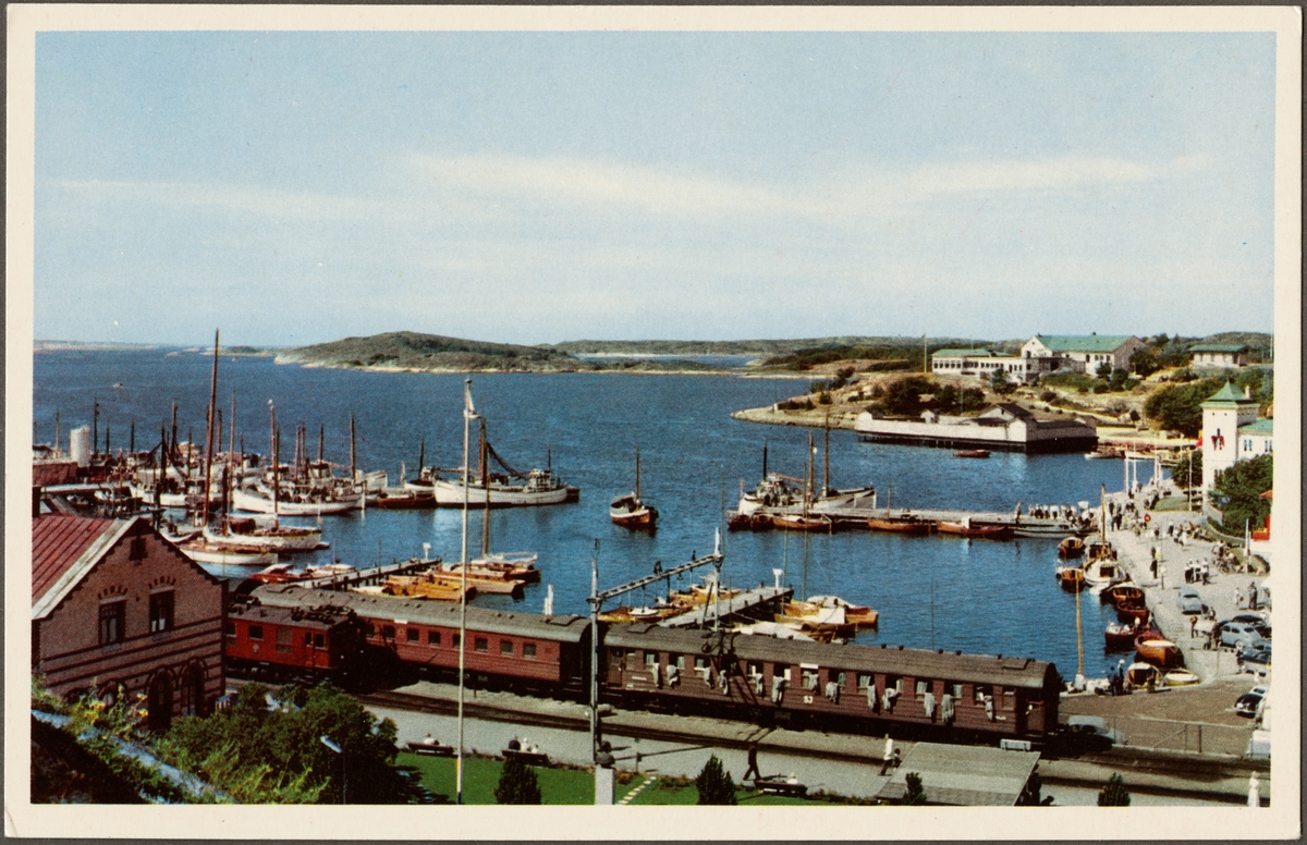 Vy på del av bangård och hamn.