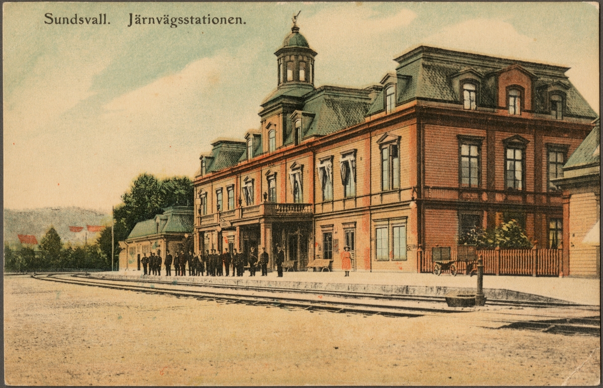 Personal framför Sundsvall stationshus.
