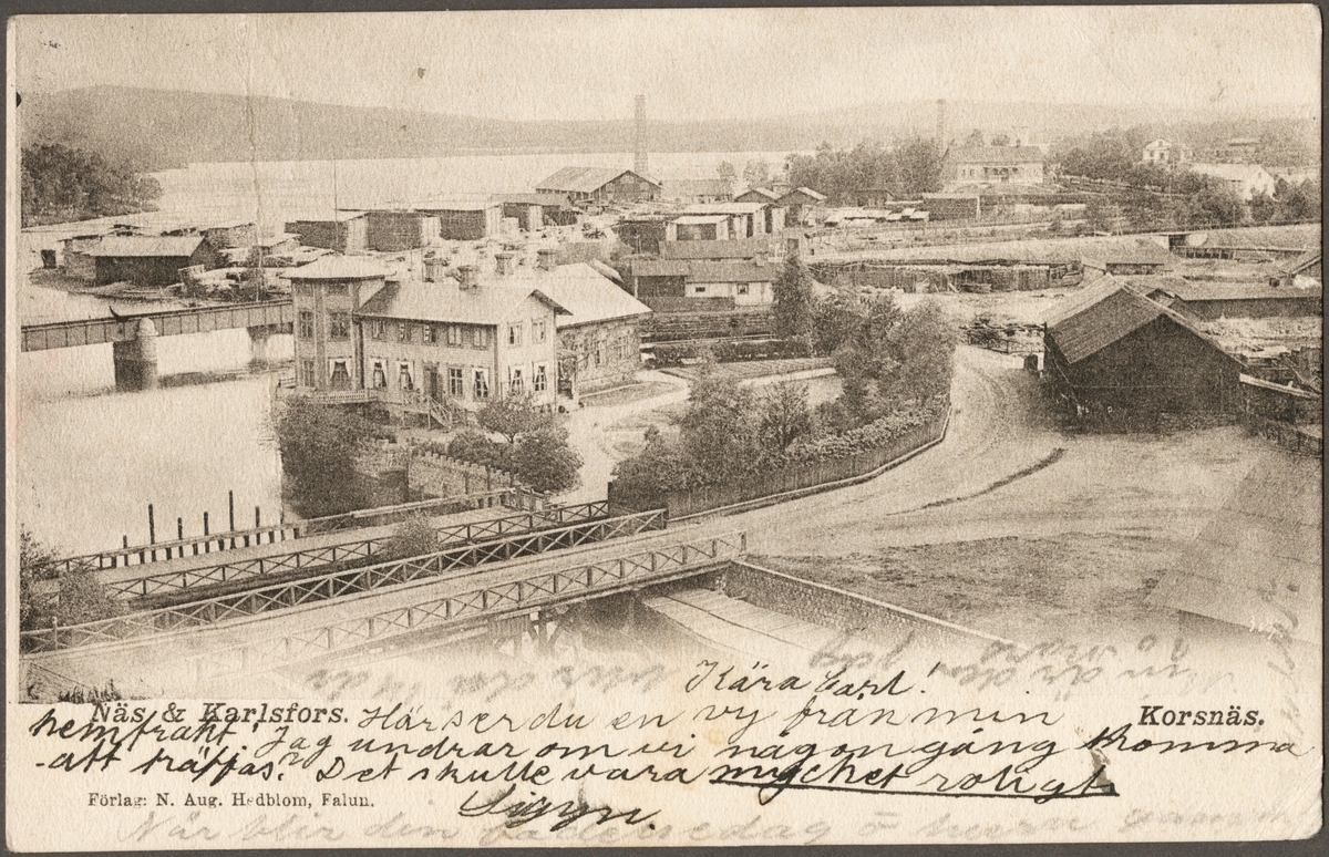 Vy över Näs och Karlsfors sågverk i Korsnäs, Falun.