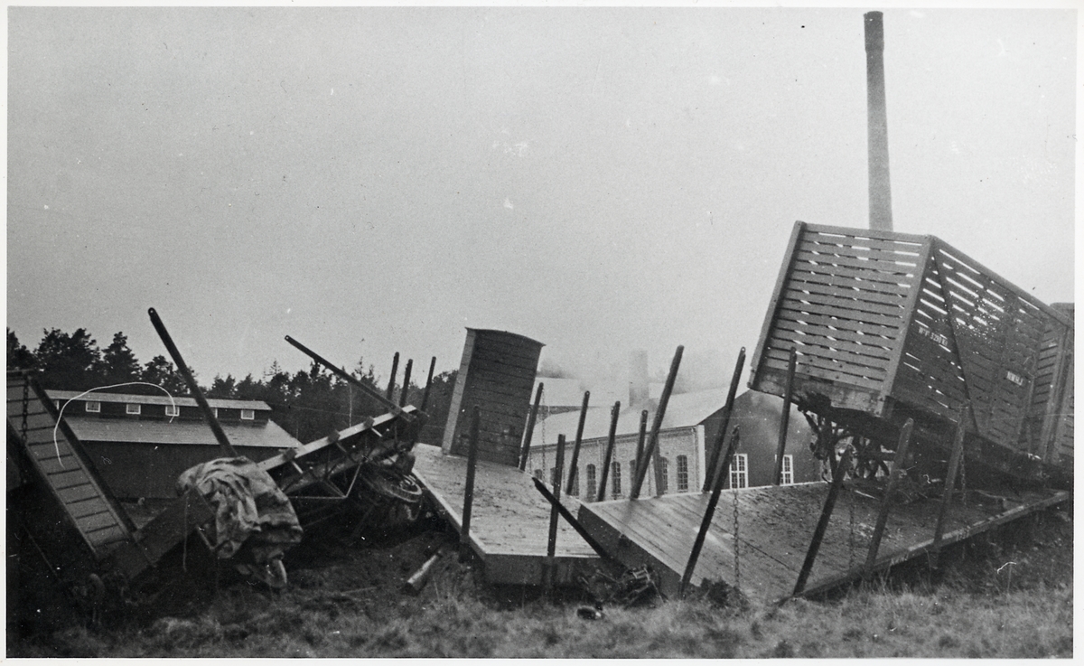 Urspårning vid Västerviks Pappersbruk. Norsholm - Västervik - Hultsfreds Järnvägar, NVHJ L 904, NVHJ L 915 och NVHJ NN1 1738.