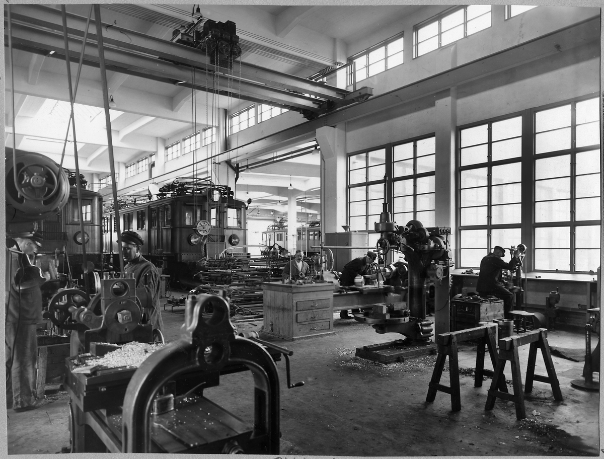 Verkstadsarbete i Malmö lokhall. Elloket till höger är Statens Järnvägar, SJ Dg 237.