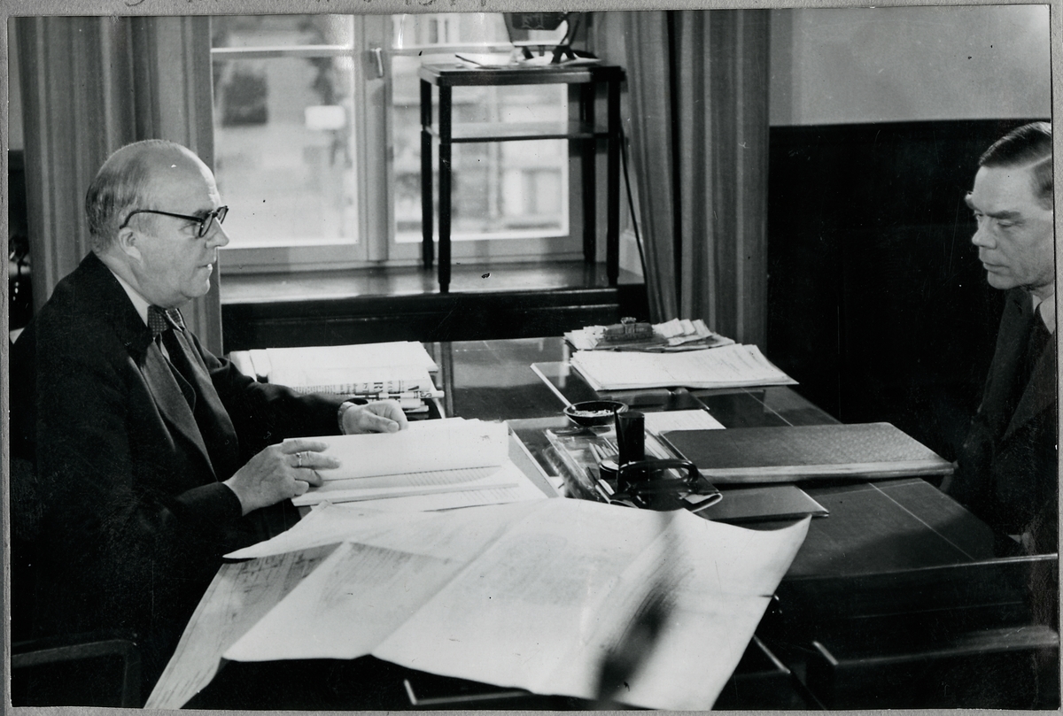 Generaldirektör Gustaf Dahlbeck och Byråchef Ringqvist.