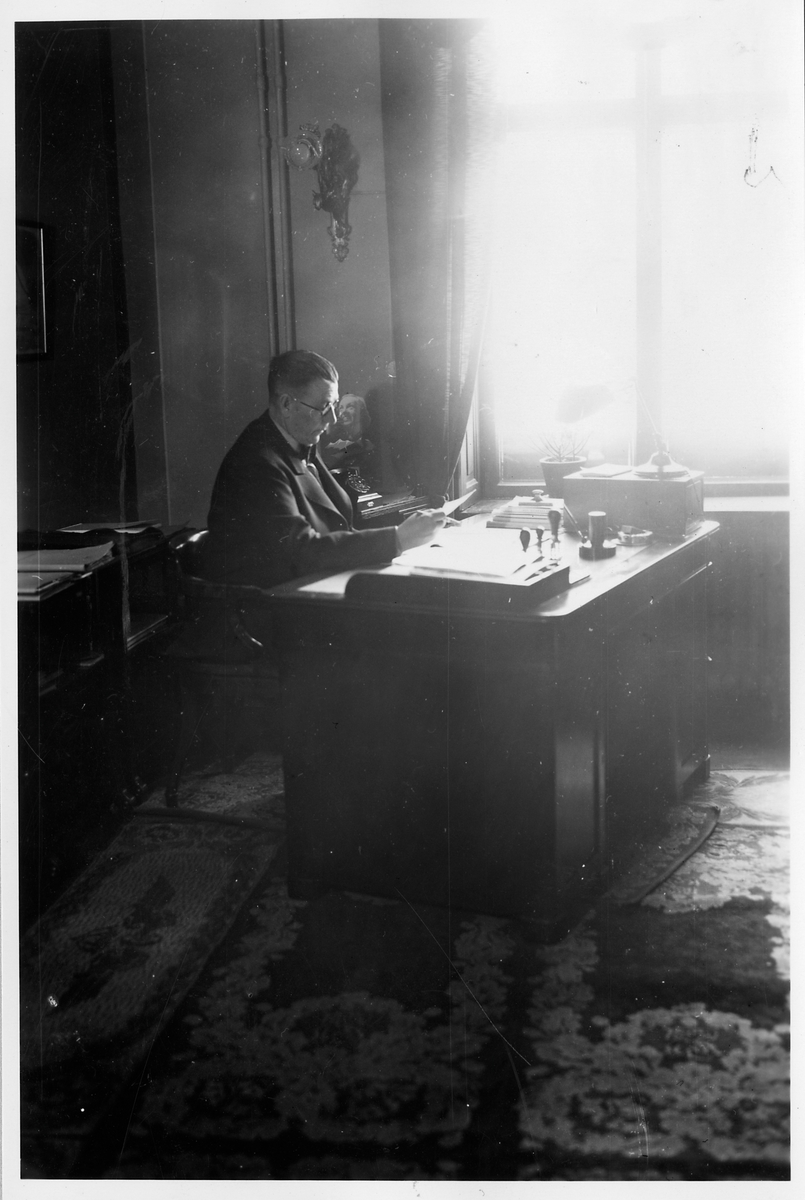 Titel: Arkitekt E. Pehrsson på sitt tjänsterum.