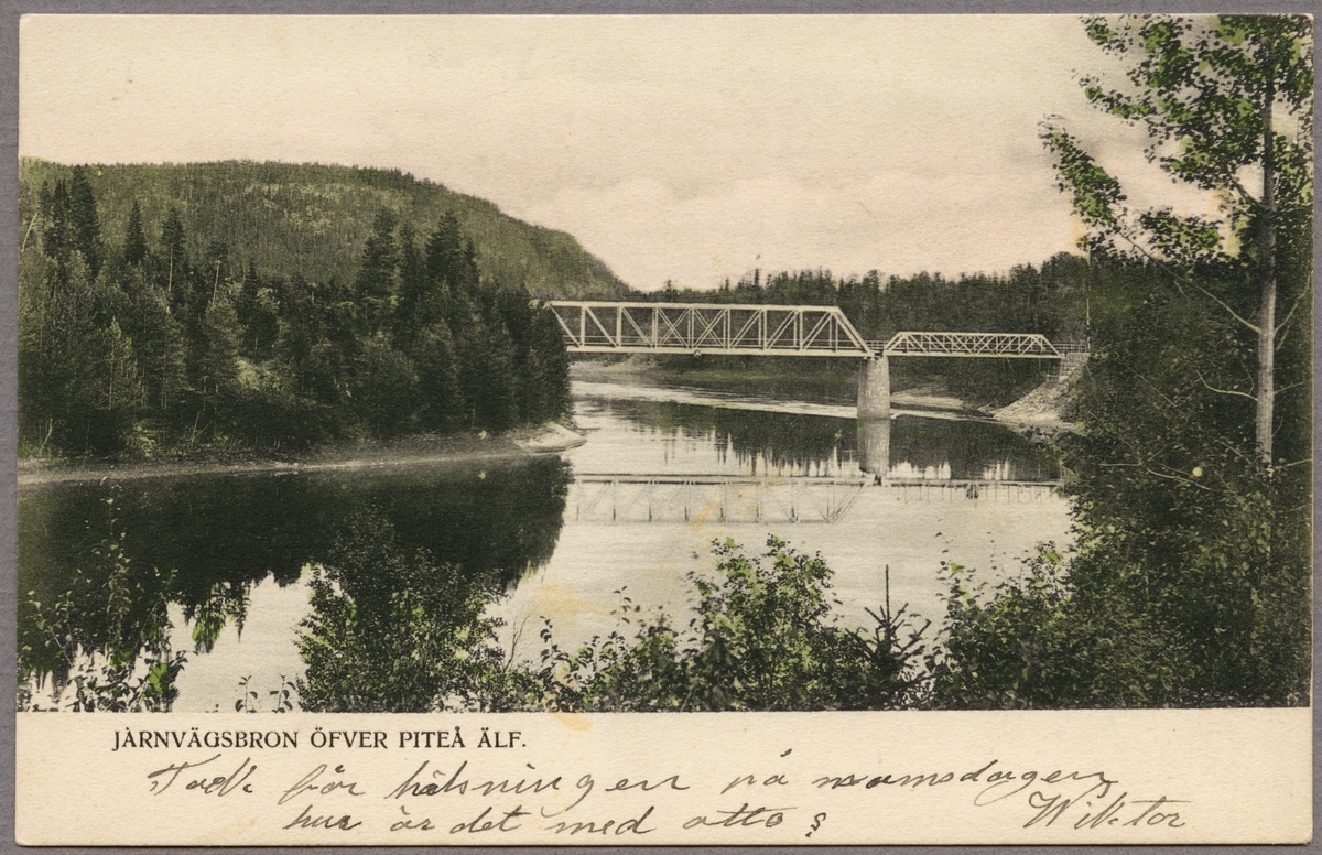 Järnvägsbron över Piteå älv på linjen mellan Älvsbyn och Boden.