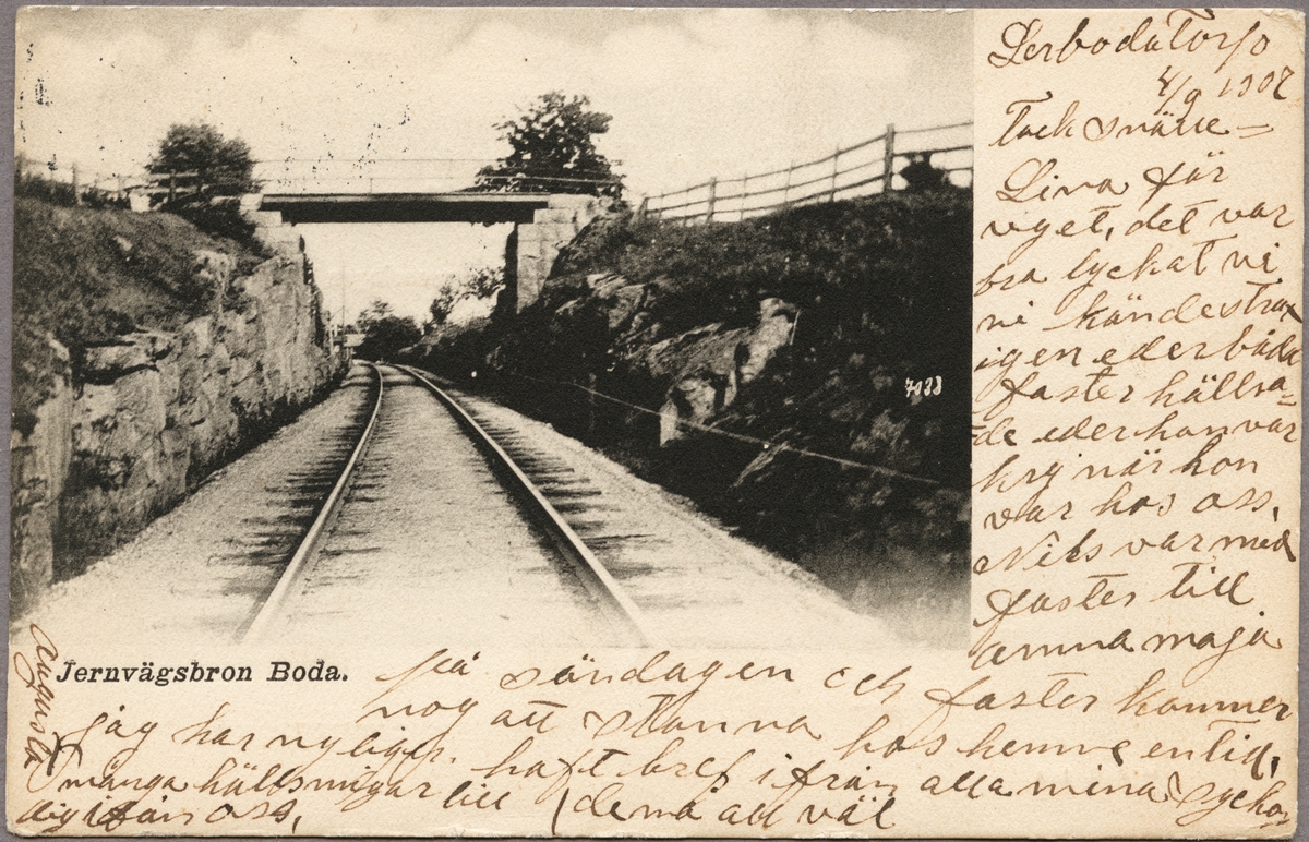 Järnvägslinje under bro mellan Lene och Brunsbergs bruk vid Högboda.