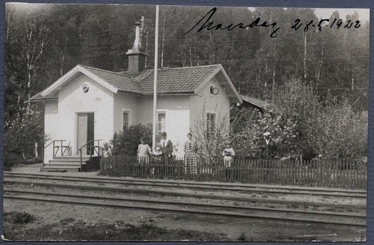 Familjen Häggström utanför sitt hem vid järnvägen.