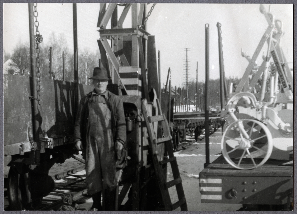 Omlastning av jordbruksredskap, bland annat en "Sesam Junior".