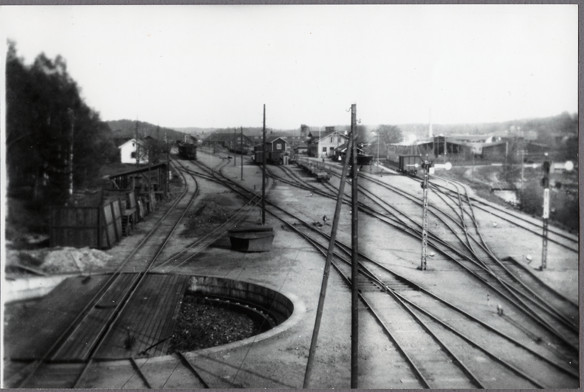 Titel: Åtvidabergs bangård sett från lokstallet.