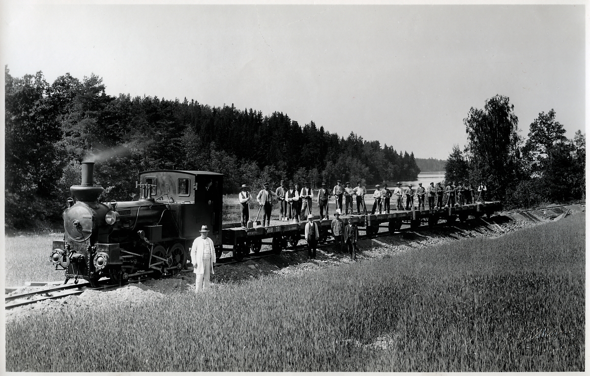 Norsholm - Bersbo Järnväg, NBJ lok 9 "Örtomta" på linjen mellan Edshyttan och Vien. Västervik - Åtvidaberg - Bersbo Järnväg, WÅB grusvagn 77, WÅB grusvagn 66 och WÅB grusvagn 17.