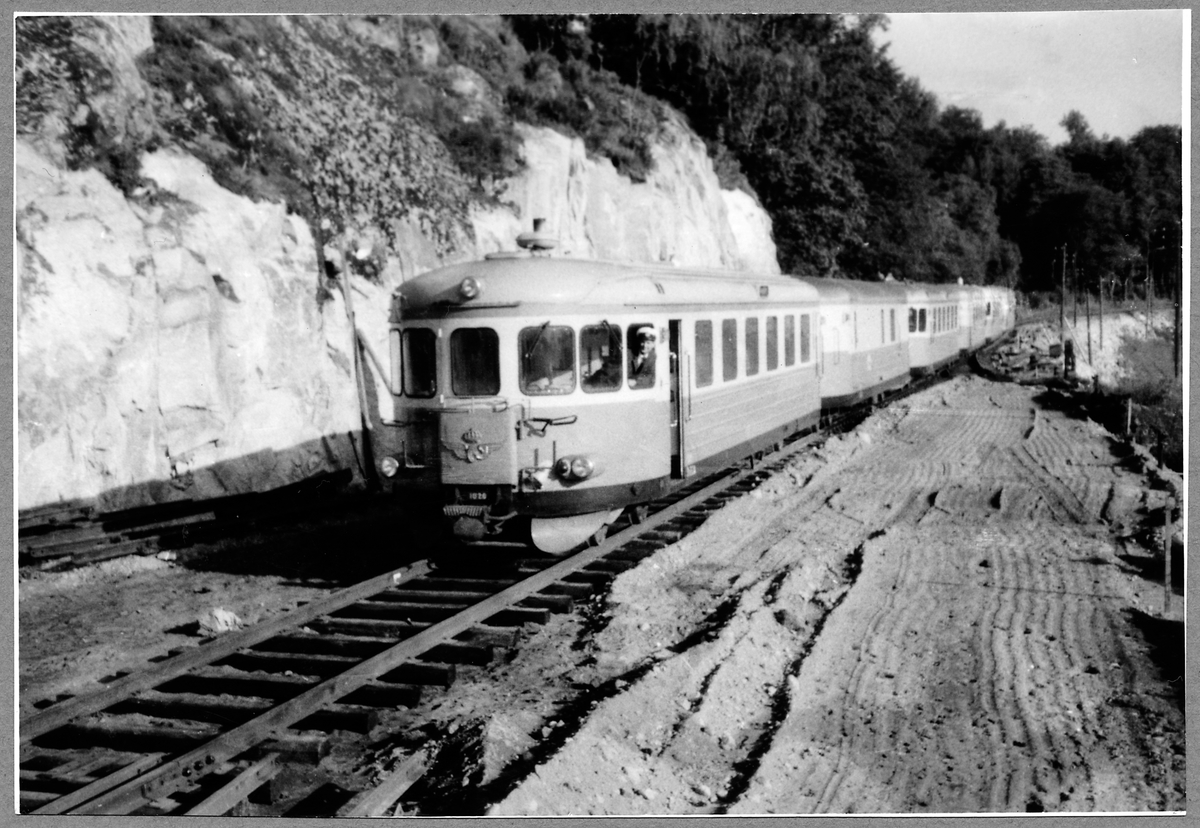 Första persontåg på normalspår, från Linköping anländer till Överums station. En del av ombyggnads arbete står kvar, schaktningen av spår till Överums bruks lager.