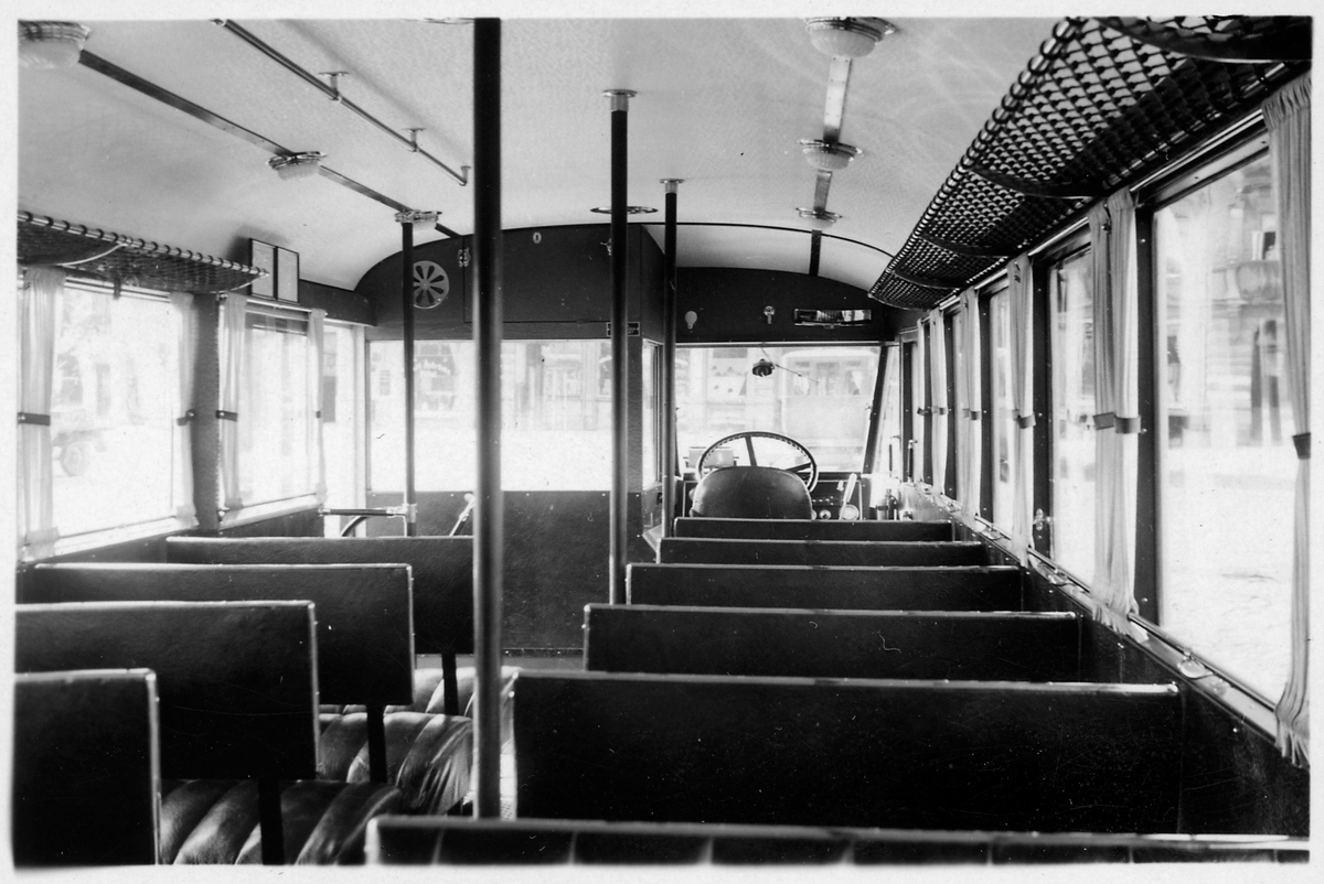 Interiör från en buss. Kristanstad-Hässleholms Järnvägar, CHJ.