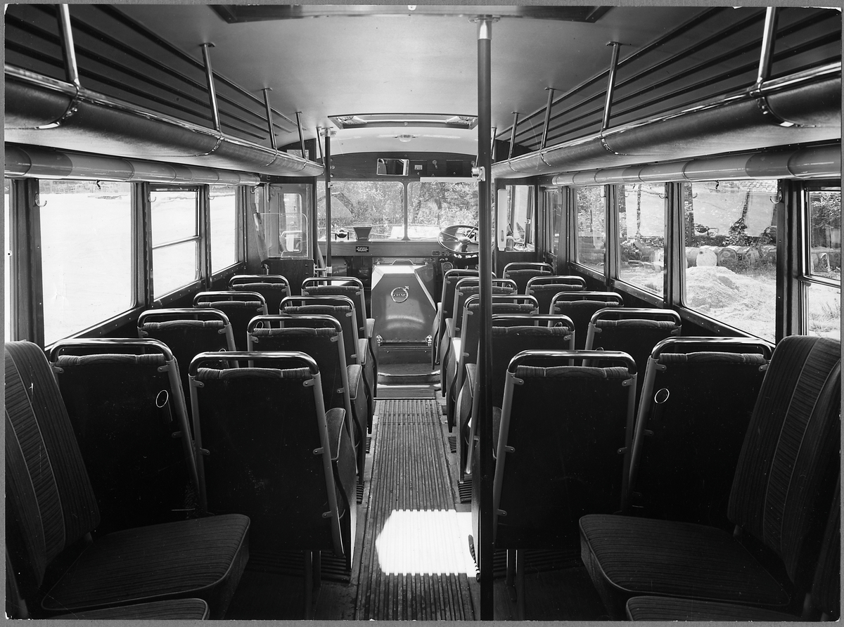 Interiör från en buss. Stockholm-Roslagens Järnväg, SRJ.