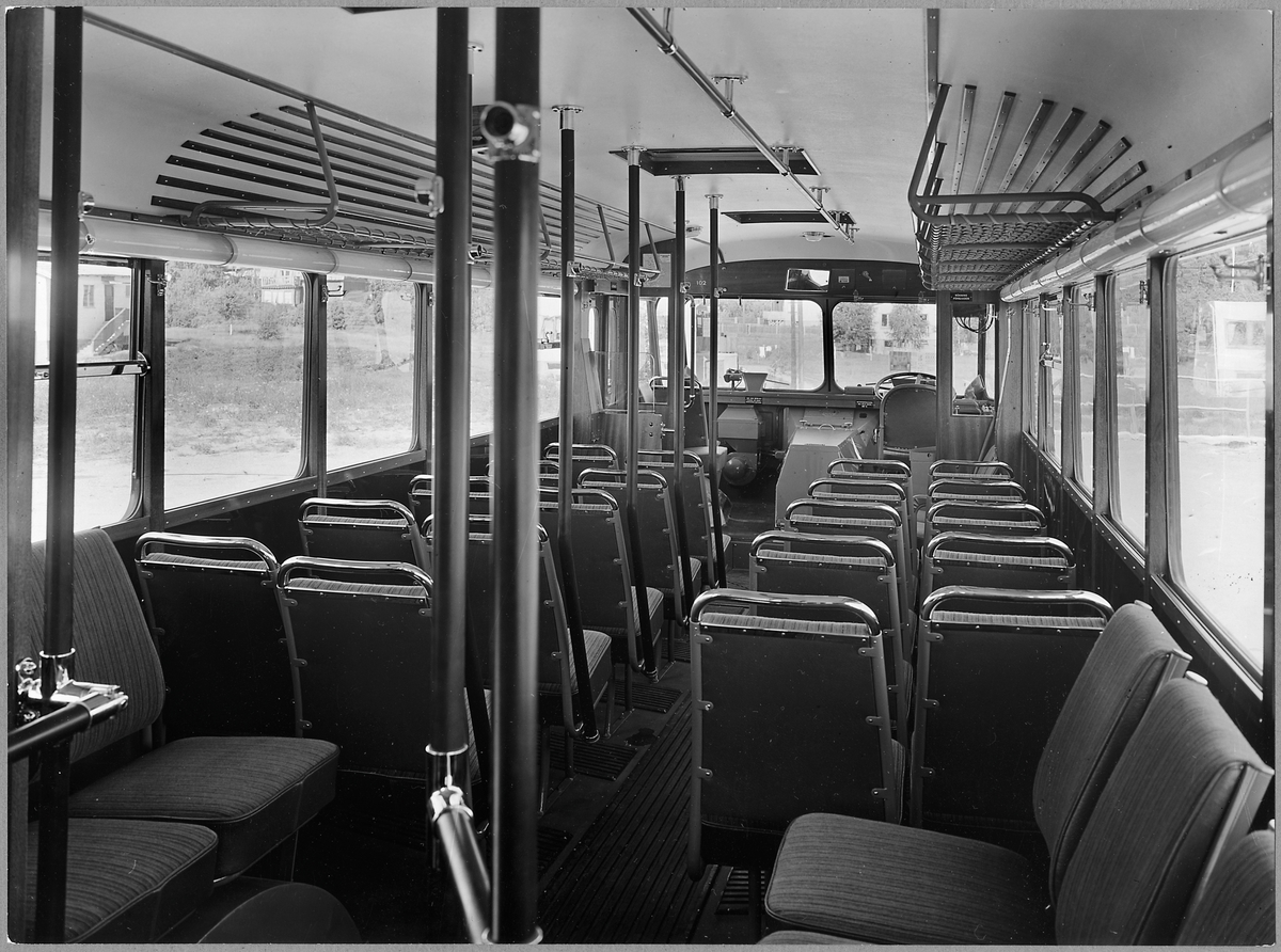 Interiör från buss 102. Stockholm-Roslagens Järnväg, SRJ.